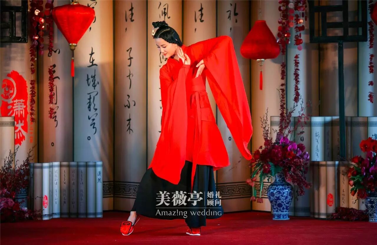 于是,新娘换上一身红装轻盈起舞,曼妙无比。