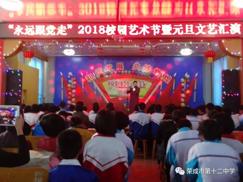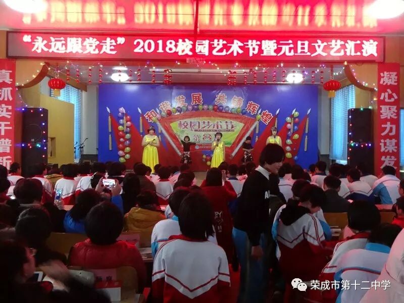 新年的钟声已经敲响,时光的车轮又留下了一道深深的印痕。伴随着冬日温暖的阳光,12月29日下午,荣成十二中乐声飘扬,舞姿翩翩,掌声阵阵,“永远跟党走”2018校园艺术节暨元旦文艺汇演展示活动在这里隆重举行!