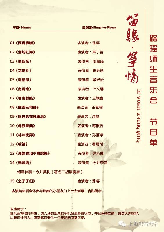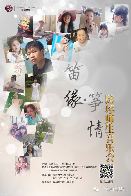 演出时间2015.8.23(18:00开始)演出地点知音艺校瑞虹分校B1音乐厅虹口区瑞虹路325号B1层四号线临平路站观演费用免费观演咨询18049974895(路老师)*知音艺校学员均可报名参加