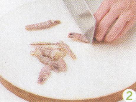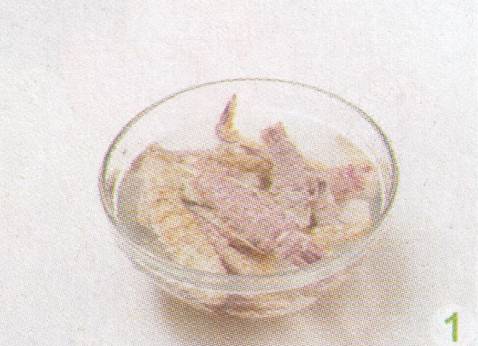 2.泡好的琵琶虾肉入锅内隔水蒸透,取出晾凉改刀备用。