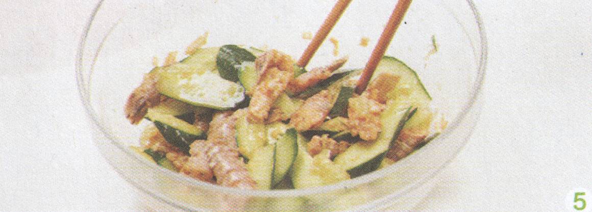 干琵琶虾100克,黄瓜200克,香油、米醋、蒜泥、蚝油各适量。