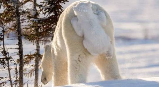 小北极熊正在和妈妈玩捉迷藏