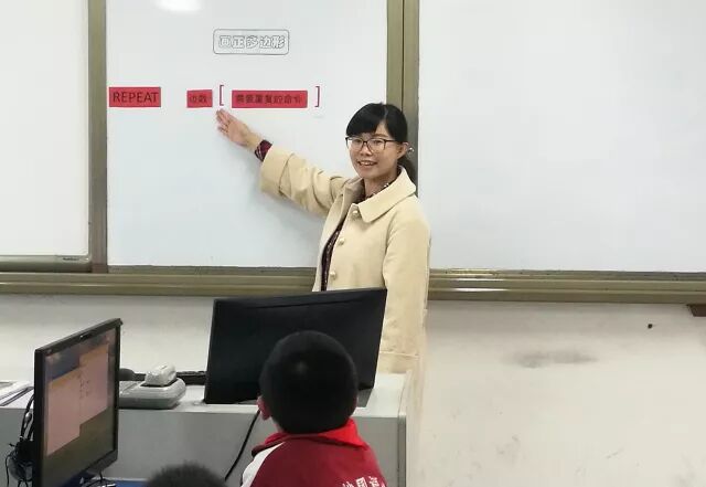 信息技术组的课题则是小学五年级的《画正多边形》。刘萃老师由有趣的“指令游戏”导入,以“闯关”的形式开展,生动有趣,知识点由易到难,层层相扣,学生们听得津津有味。