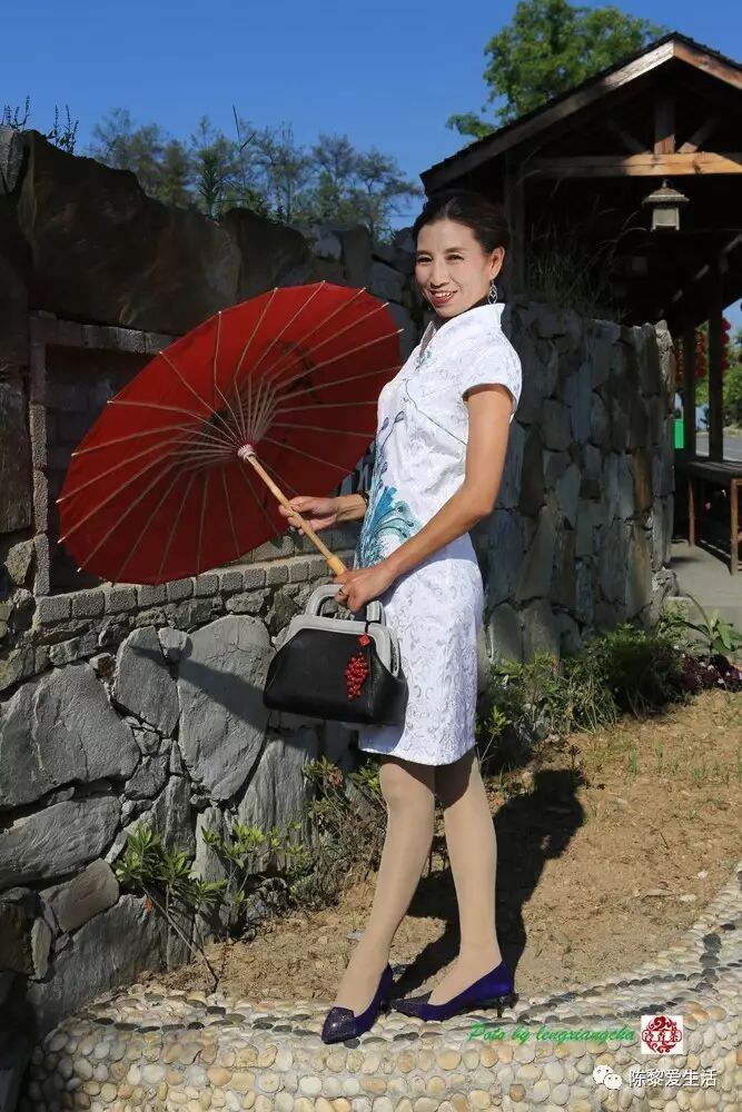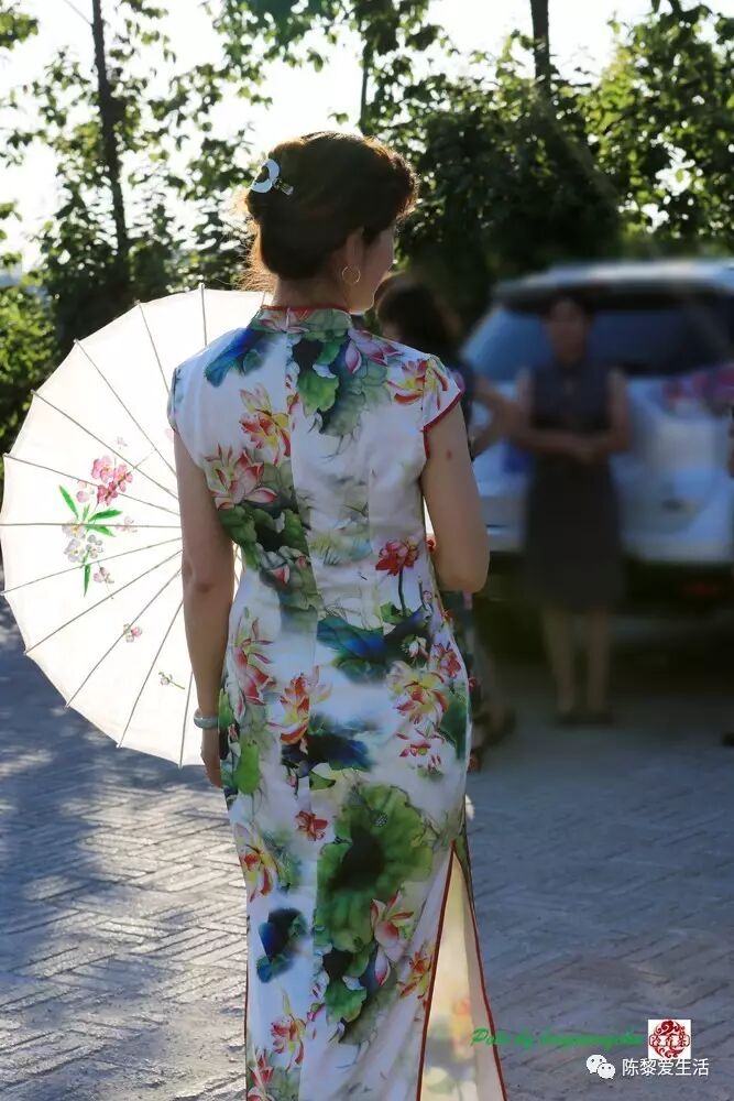 着一袭旗袍,正面看来,端庄秀丽,高贵典雅,豁达从容;侧面观之,凹凸有致,若隐若现,美轮美奂。真正是把一个女人的韵味淋漓尽致的展现无余。