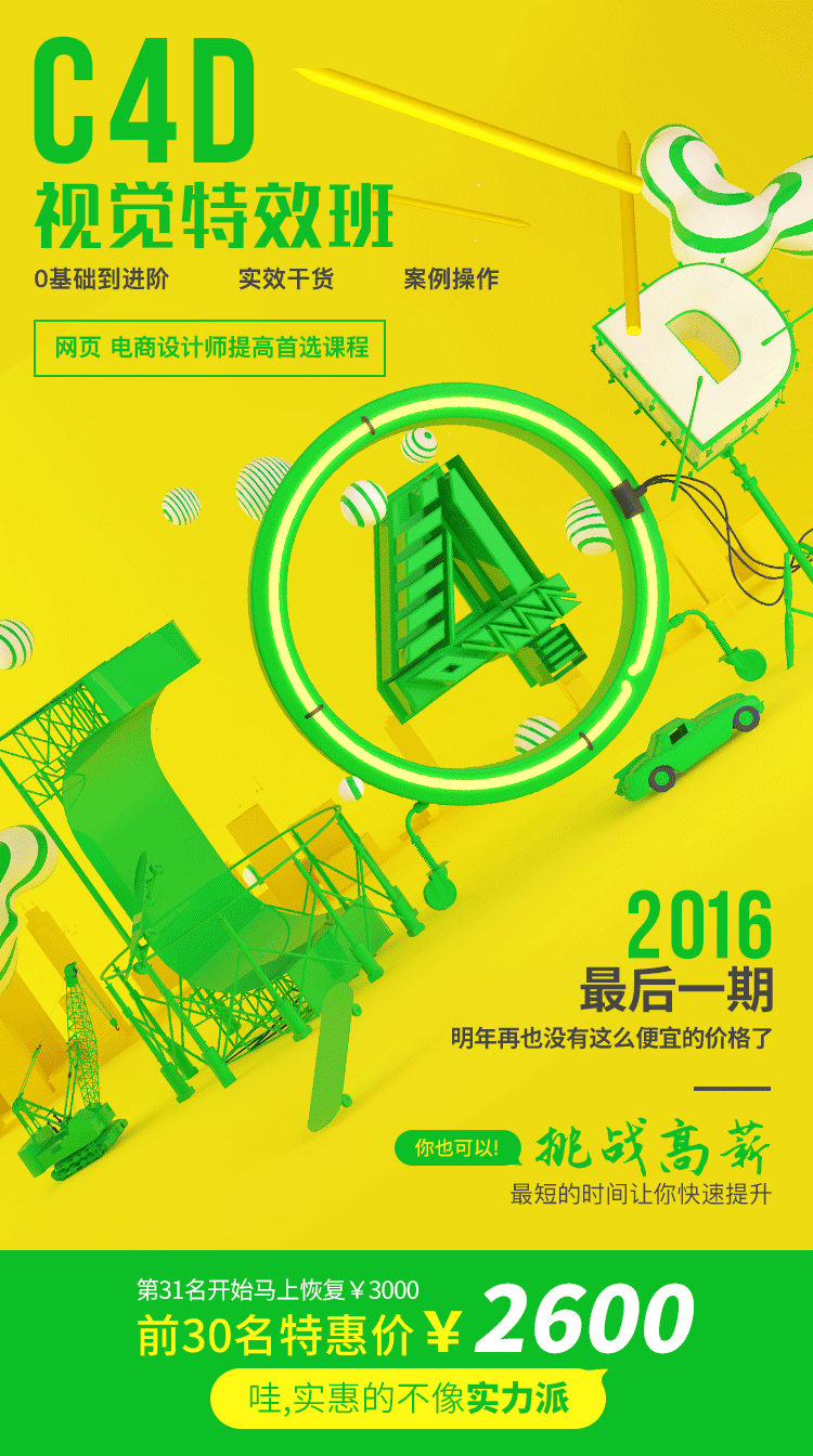 C4D视觉特效班年前学习新技能,年后加薪2016年最后一期,明年涨价啦!
