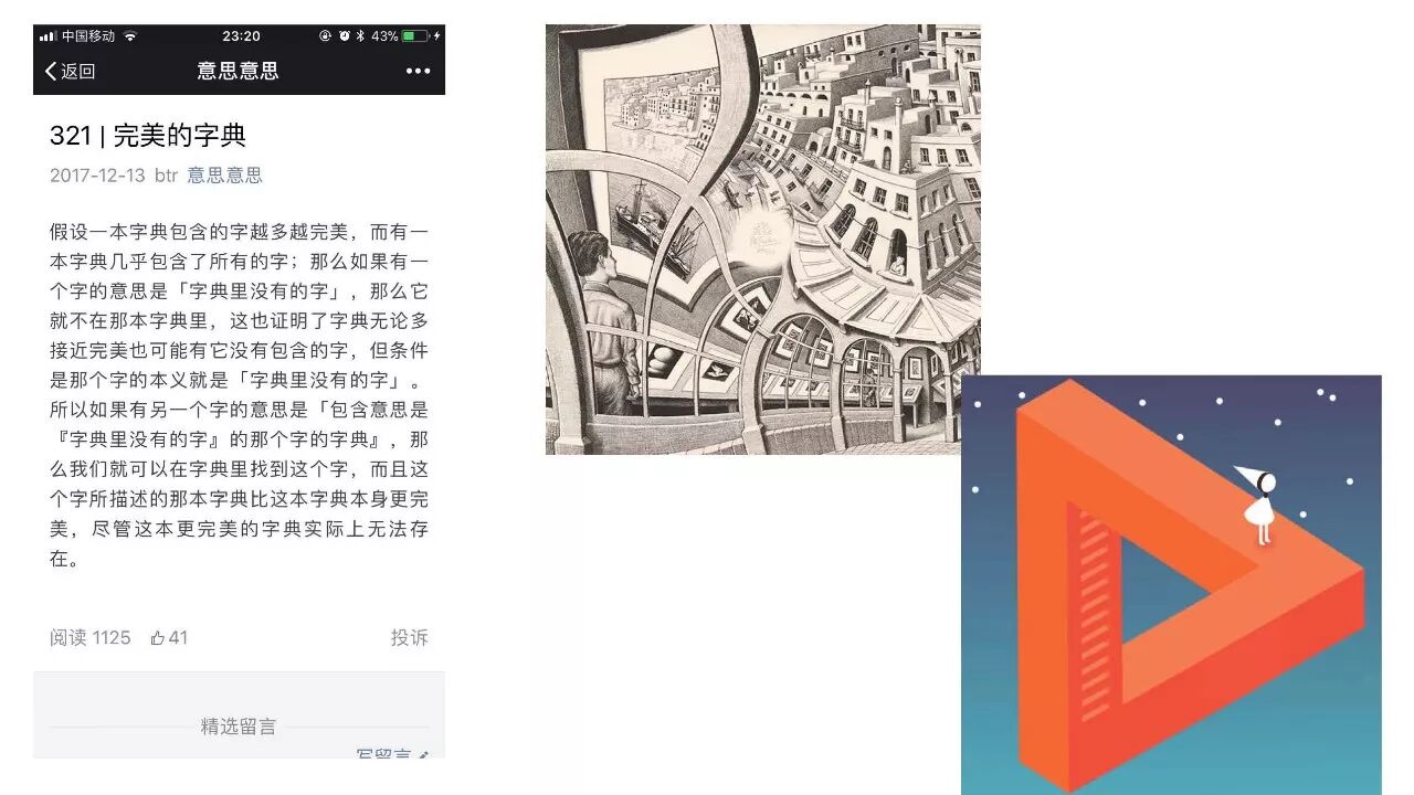 刚才btr的分享中提到一个“自画像”的案例,以往当你看到“自画像”这三个字时,这个词汇会触发你的想象,然而当你在微信这个介质里看到“自画像”三个字时,你绝对只会想到它的本义。就是说,在这个环境里,“阅读”被省略了,文字变成了符号,而这种符号甚至是不需要被破译的,是没有含义的东西。换句话说,在微信这个介质中发生的“文字图像化”,不是说把文字转化成图像的形象,而是它的存在本身就是图像。