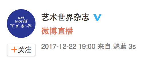 直播回放:请至新浪微博搜索“艺术世界杂志”进行观看