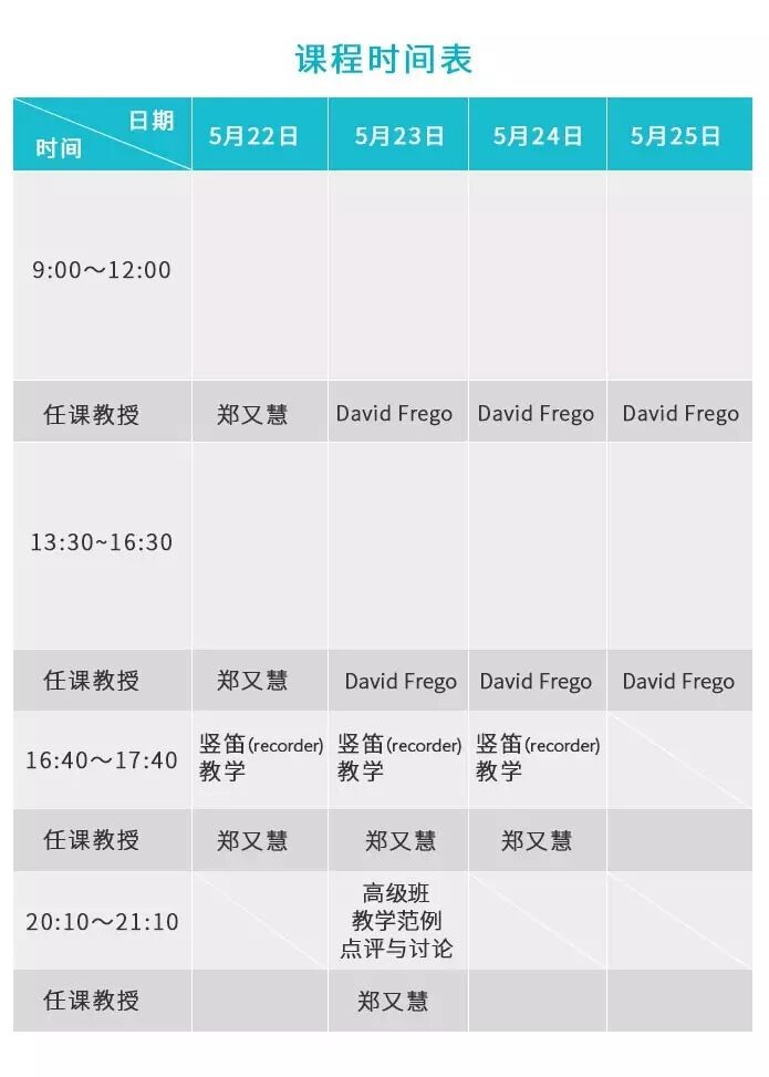 而郑又慧老师所说的5月22日-25日上海音乐教学法研习会,也是郑老师来国内讲解为数不多的教学课程,所以大家把握住这次难得的机会。