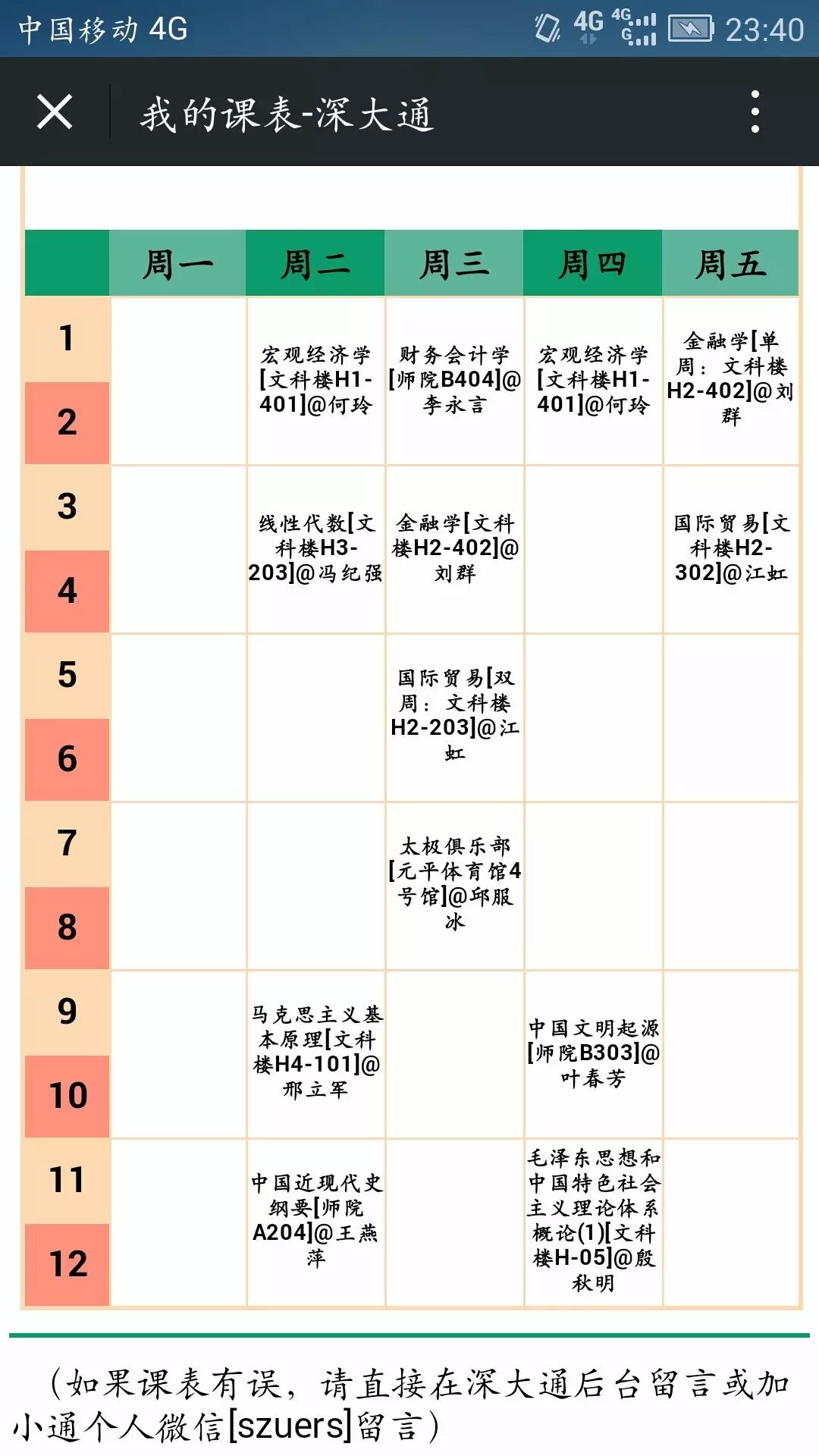 ② 查询课表,请在深大通回复“课表”