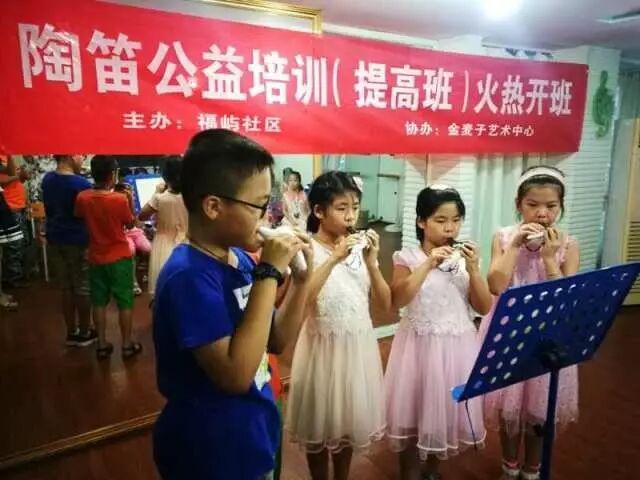 这两年来,云儒教育与金麦子中心、腾讯大闽网联合推出社区免费学陶笛公益培训。在主题为《这个夏天,轻松吹陶笛》的公益活动中,共吸引了200多名中小学生参与这个培训活动,取得了相当好的效果。此外,推广中心还与福屿社区、融侨锦江社区、金牛山社区等合作推出免费公益培训活动,让许多青少年及成人认识了陶笛,并成为了陶笛爱好者。在陶笛中心的努力下,目前,福州地区的陶笛吹奏者越来越多。