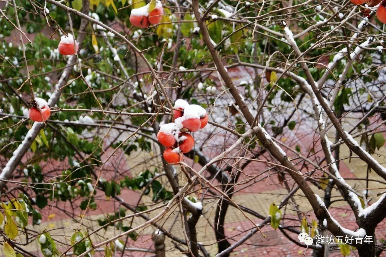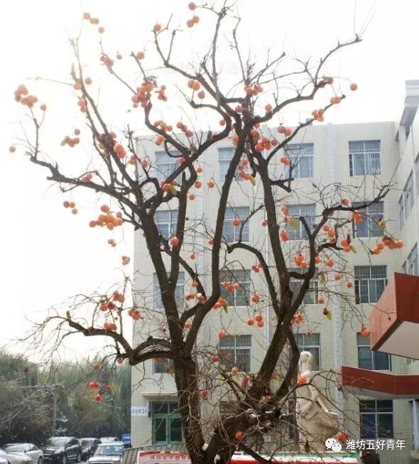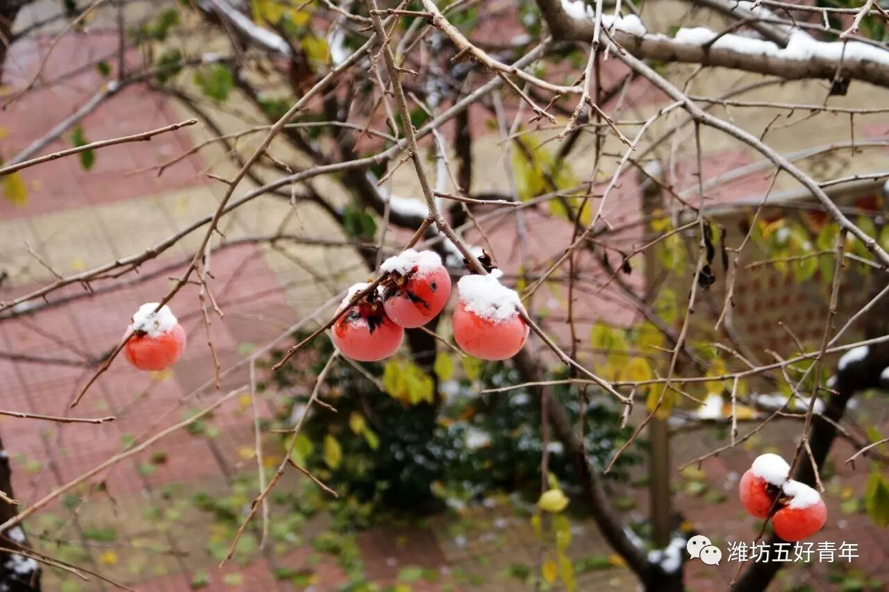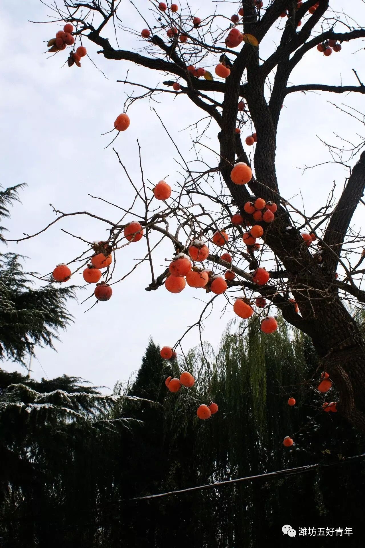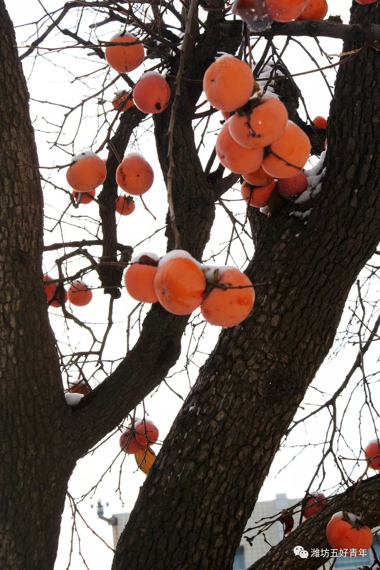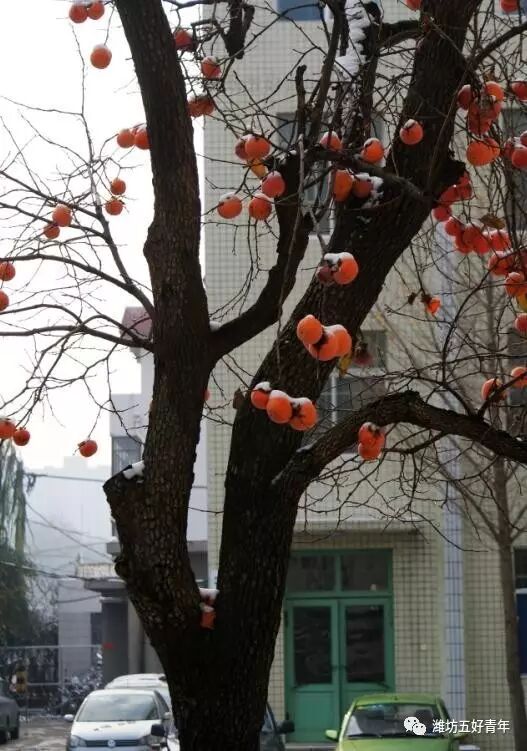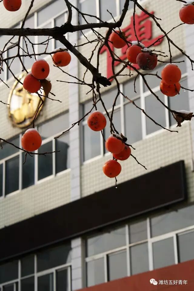 学校方井的柿子,在寒雪中依然这么傲娇地挺立着。