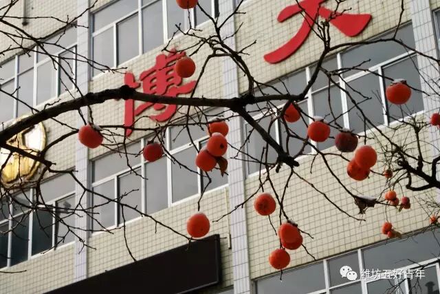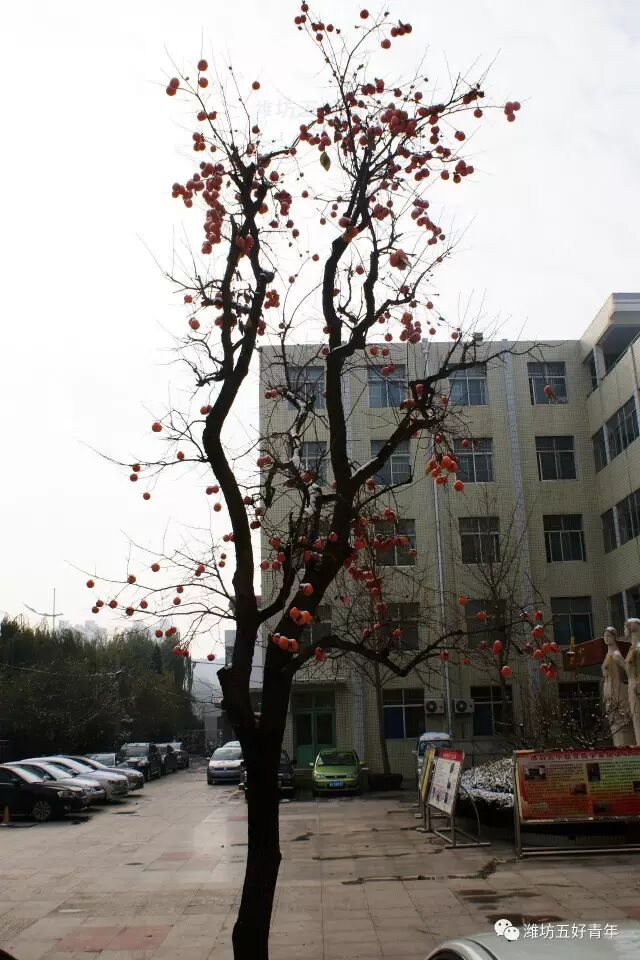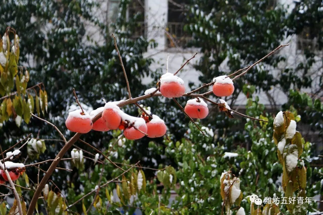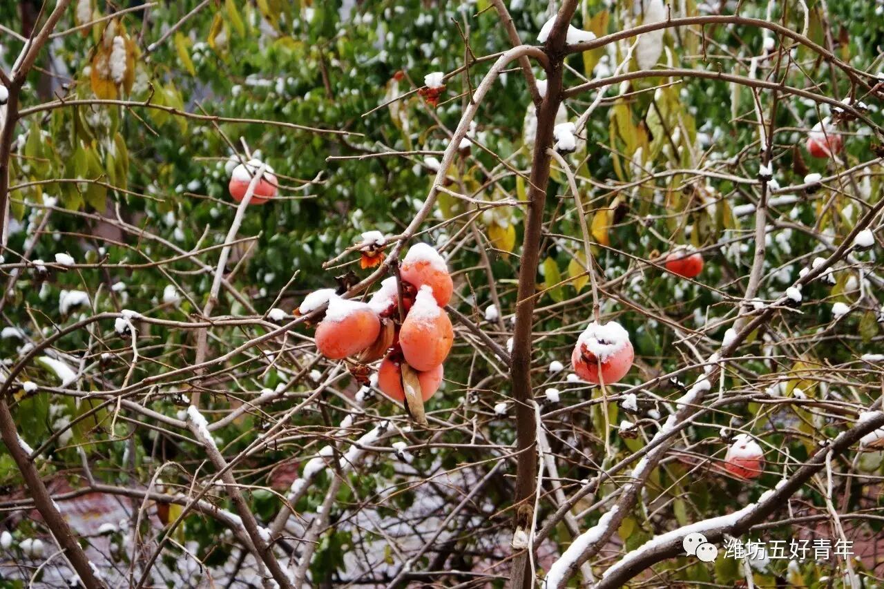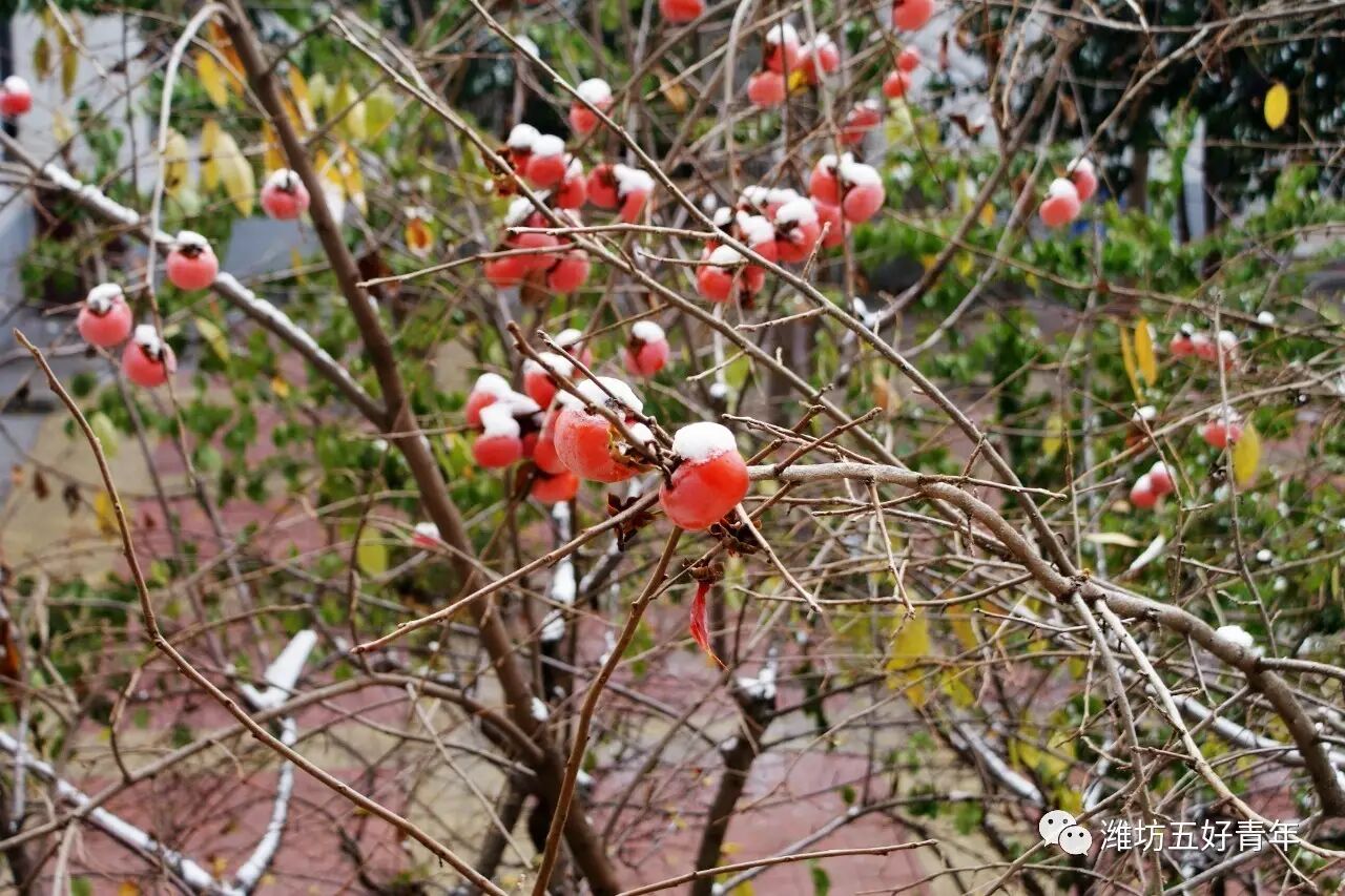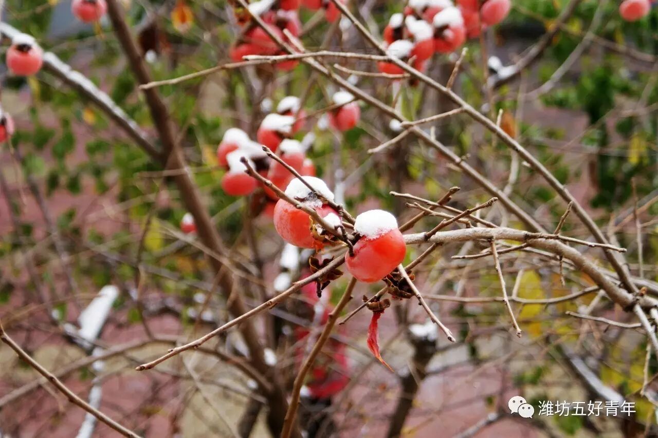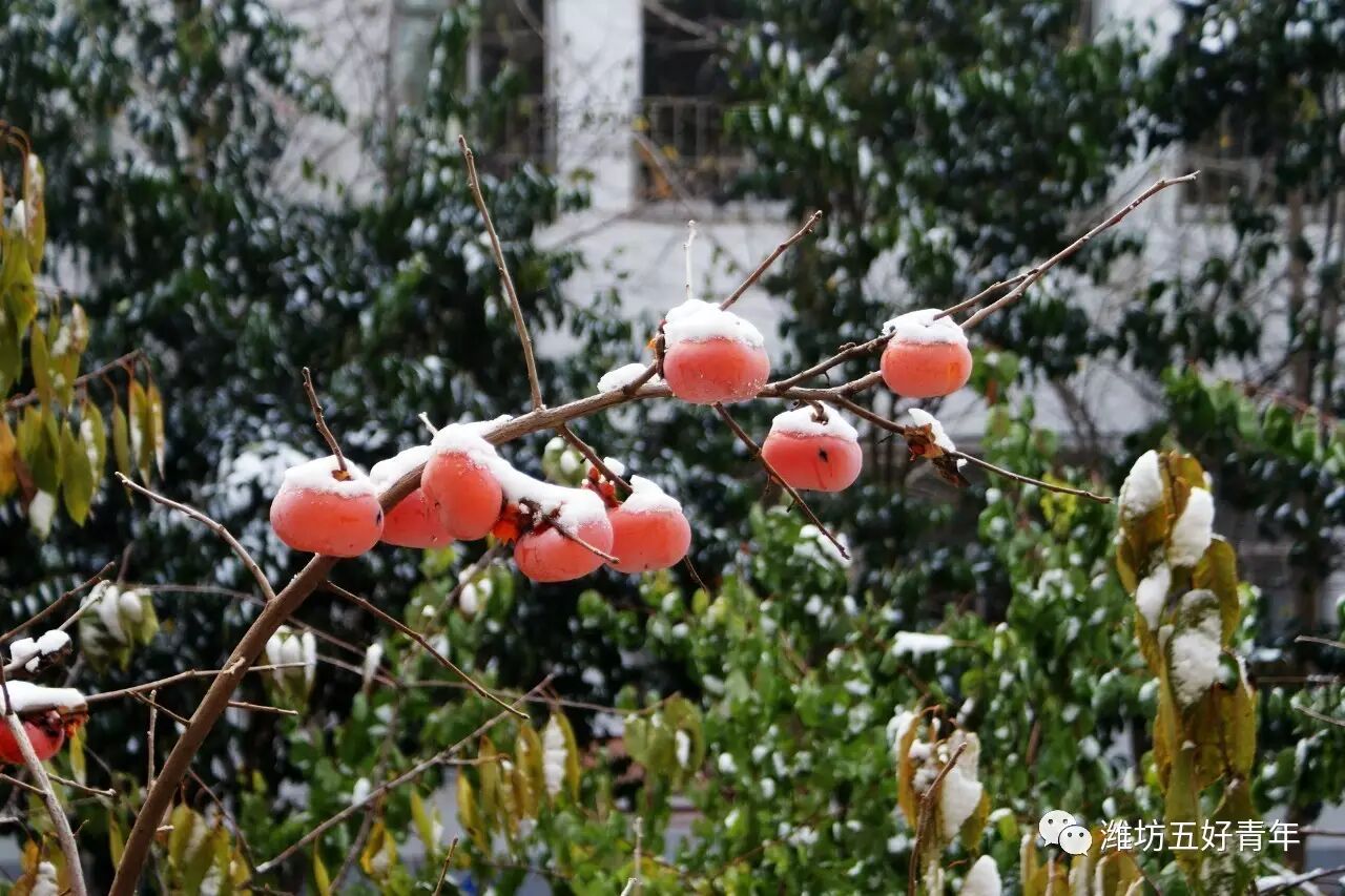 学校方井的柿子,在寒雪中依然这么傲娇地挺立着。