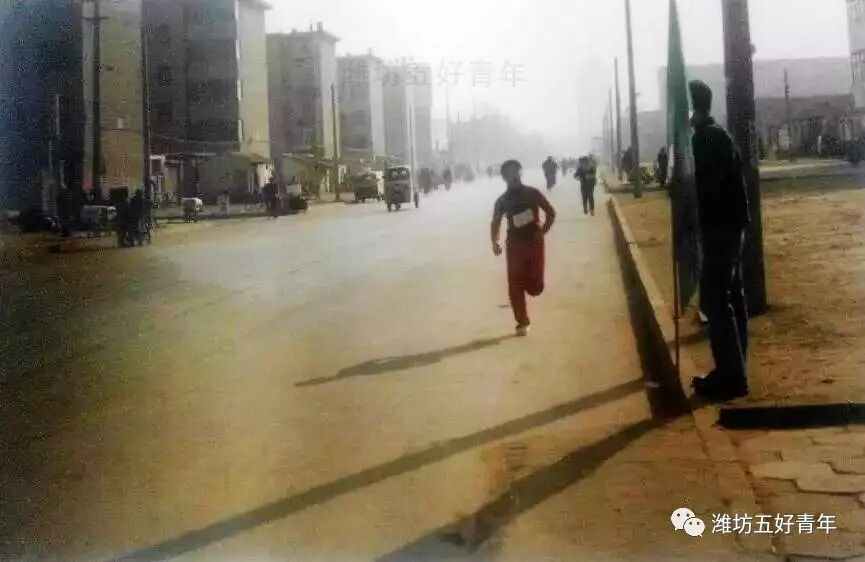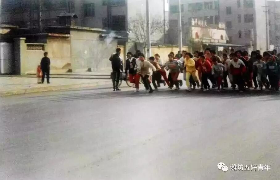 1996年在校门口的向阳路上,比赛冬季越野赛。看出那时向阳路北段车辆少了。