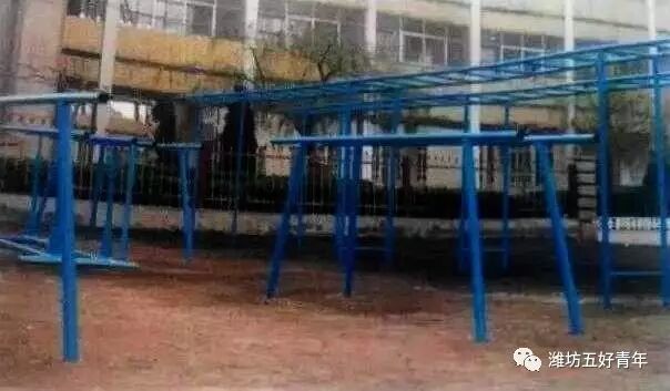 在教学楼和操场之间有一排体育器材,单杠,双杠什么的。当时就读的学校,小学是没有体育器材和跑道的,操场也是小的可怜,中学倒是有器材和操场,不过没跑道,那么问题来了,毕业考试,考体育怎么办(记得当时考拉单杠引体向上和跑1000m)?到哪儿练呢?