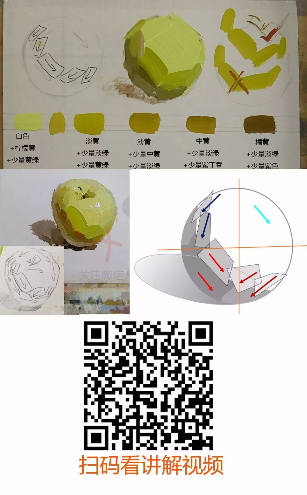 教学目的: 掌握黄色系的调色规律与用笔规律,为接下来的单个塑造打下基础。