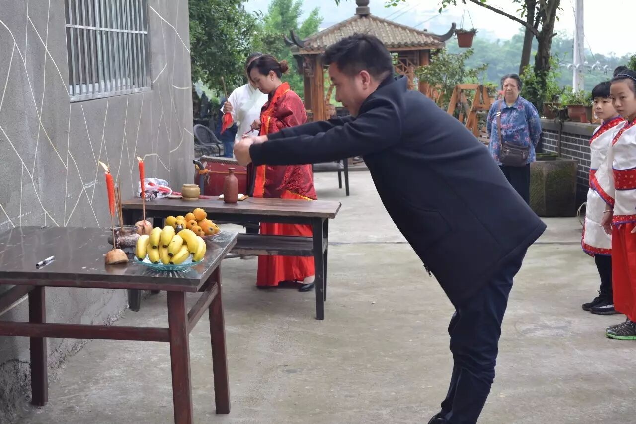 在礼仪师的带领下,大家学习了简单的古代三拜礼,然后祭祀活动正式开始。