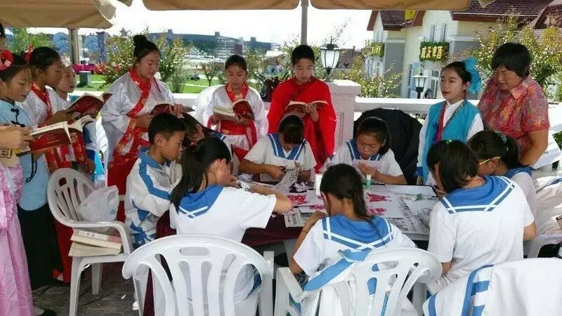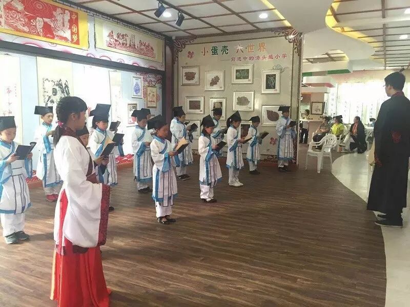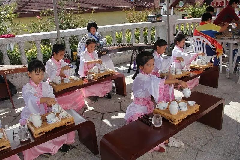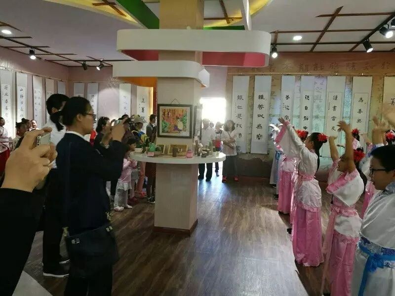 黄岛区太行山路小学展示了独具特色的陶艺、茶艺、创意绘画和书法四项传统文化教育内容,吸引了众多游客驻足观看、啧啧称奇。