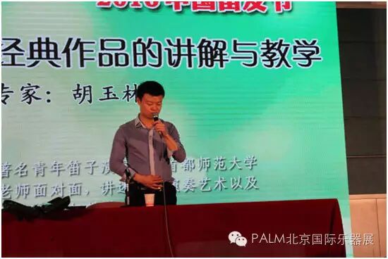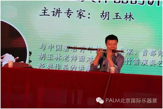 【中国演艺科技网讯】5月25-28日,备受瞩目的第二十五届中国国际专业音响·灯光·乐器及技术展览会(乐器展)(以下简称PALM 2016北京乐器展)在北京·中国国际展览中心(老馆)全面展开,各式器乐文化大餐不断上演。 26日, “竹笛演奏艺术以及经典作品的讲解与教学”的主题讲座在综合服务楼226会议室开讲,由中国著名青年笛子演奏家、首都师范大学音乐学院教师胡玉林主讲,内容既有竹笛吹奏基本功气息的练习和运用,实战演奏技巧,也有竹笛作品的赏析和演奏方法。竹笛爱好者数十人慕名而来,聆听了一场讲、演结合的生动讲座。 ![]()