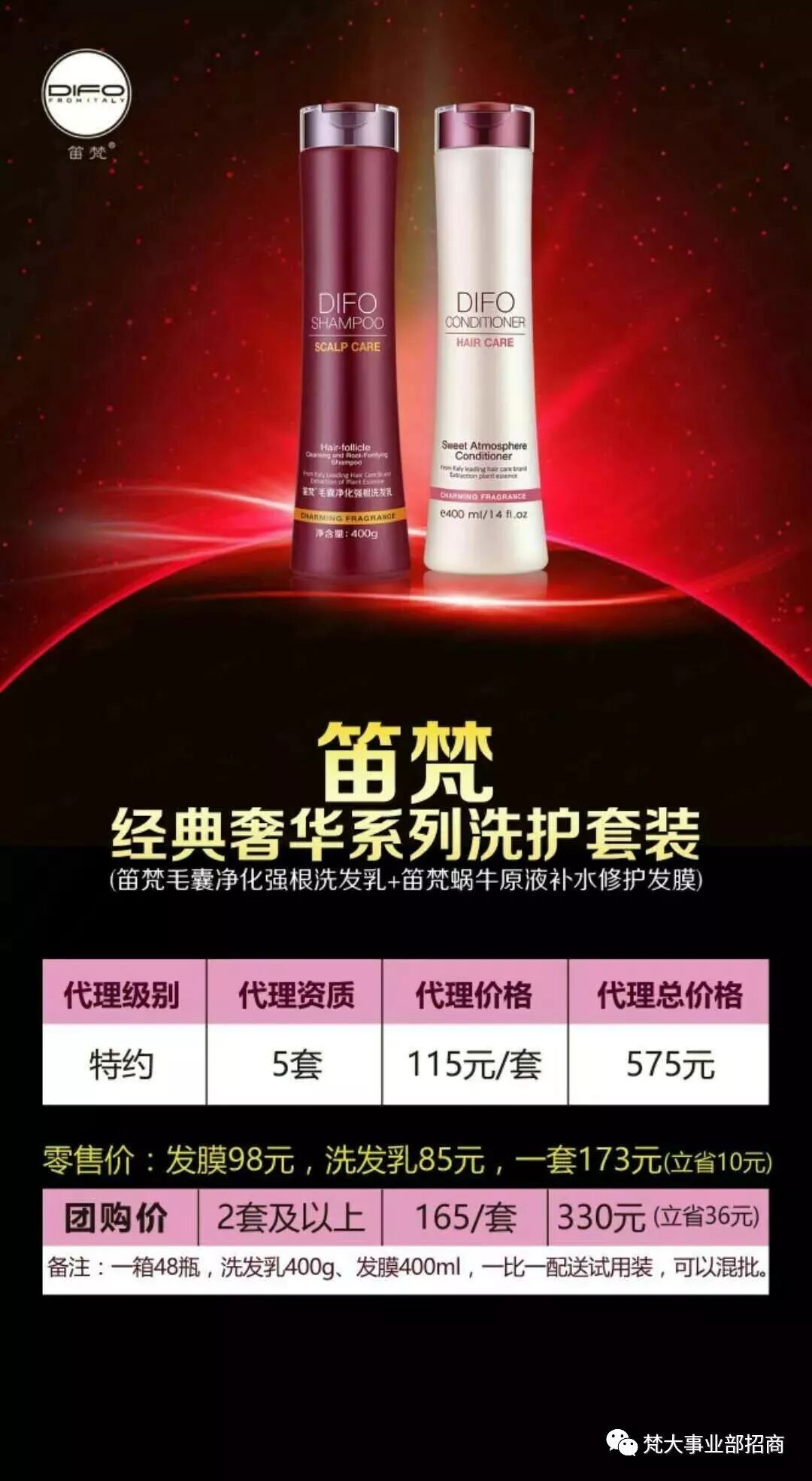 笛梵毛囊净化强根洗发水全国统一零售价:85元/瓶,
