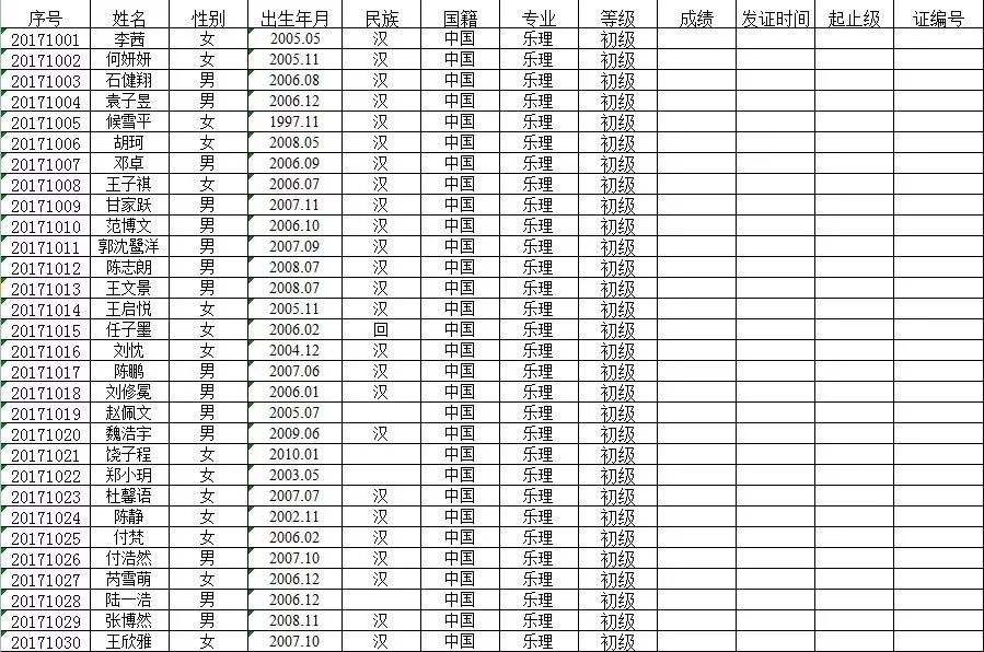 如发现个人信息(姓名、性别、出生年月、民族)有误,请于成绩公布后,两日内,致电或发送短信至2017全国社会艺术水平考级六安考区办公室:18905642695 李老师 修改,逾期无效。