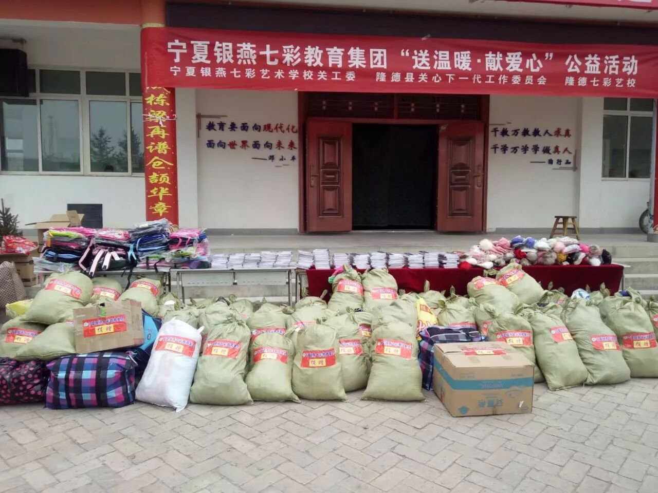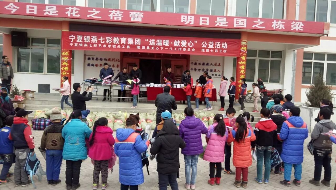 为了更好地传递爱心,宁夏银燕七彩教育集团积极参加爱心公益活动,我集团与宁夏关心下一代工作委员会,2017年12月29日,在隆德县奠安乡中心小学开展以“送温暖·献爱心”为主题的公益捐赠活动。