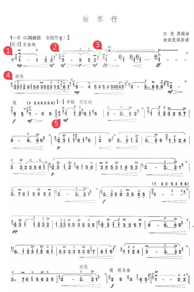 ⑤:注意气息的运用,里面的加花,不要做作,加花含在主音里面;