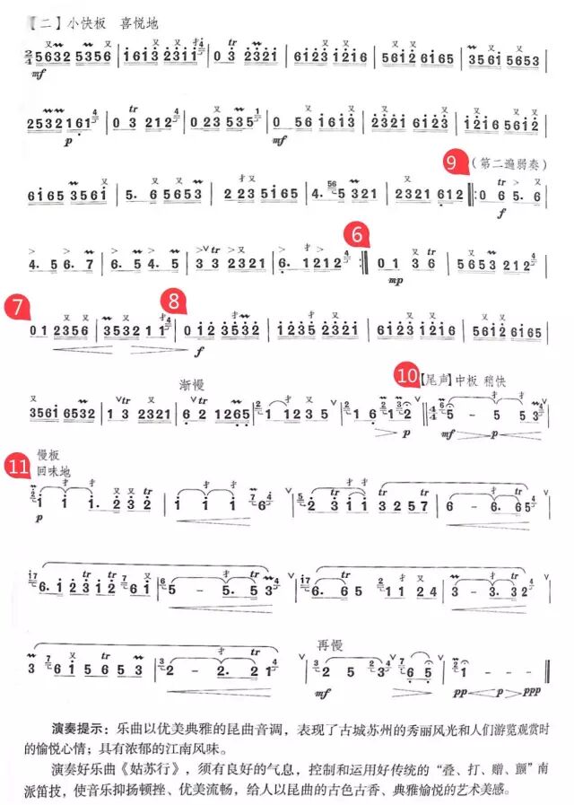 ⑩:不要用太多的气颤音来表现,气颤音用在长音后面,需要渐强的音把旋律推上去;