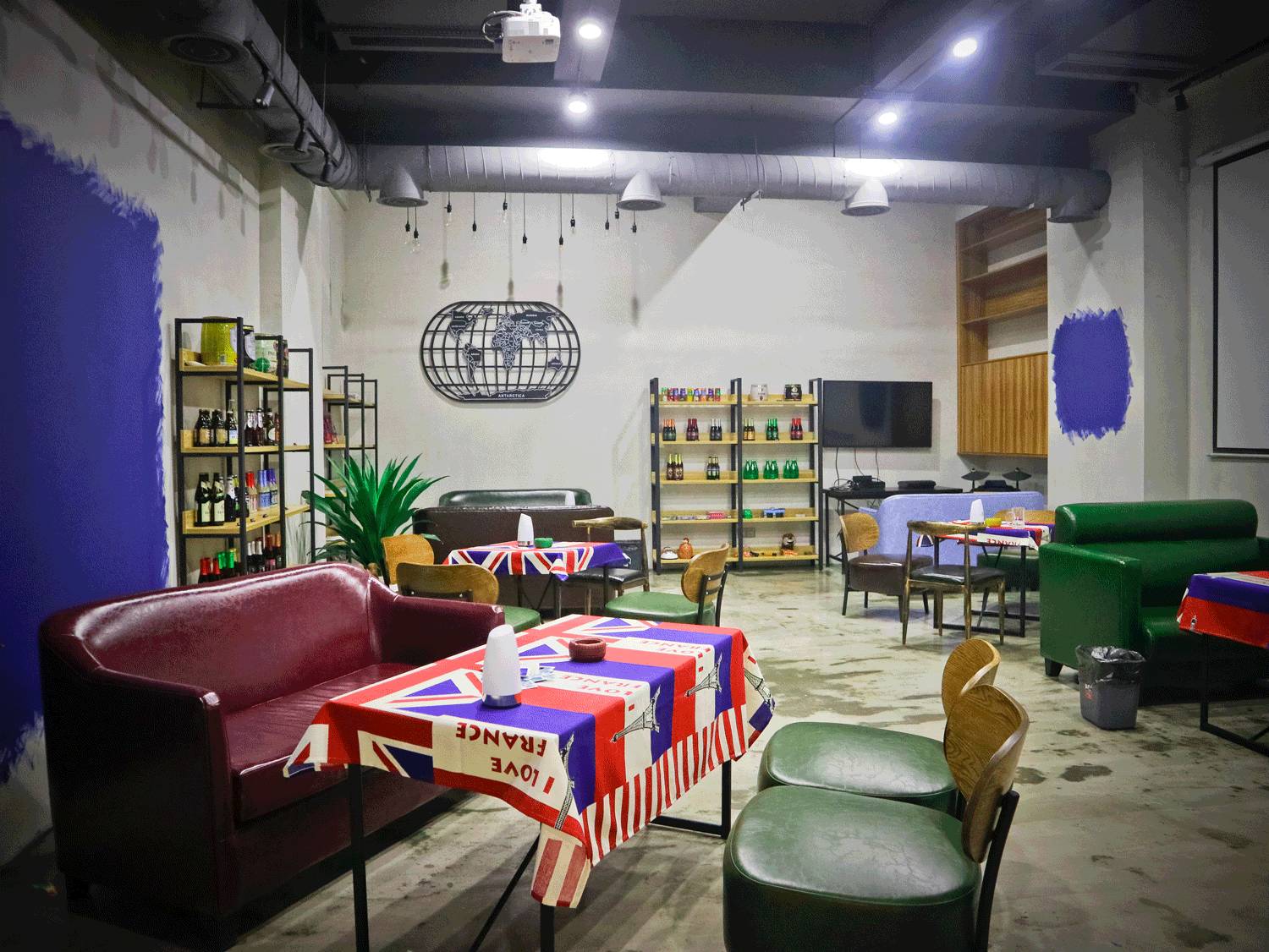 工业风的设计风格,简约宽敞,适合跟朋友在周末喝着小酒,玩几局狼人杀。成都本土知名的原创品牌赤手造入驻“耍家”,可以定制专属的银器,画框里的手稿看着很酷。大屏幕还在循环播放电子烟的video,喜欢的朋友可以gao一盘,烟圈的美让人迷恋。