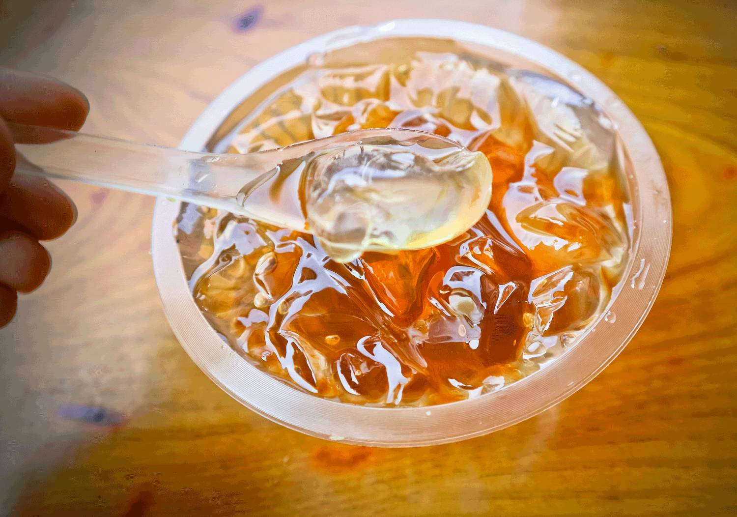 “婆婆,你家的冰粉吃到了小时候的感觉,简简单单的很好吃,一点都不水垮垮。”