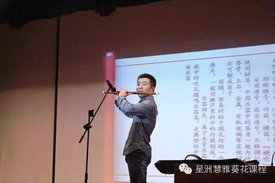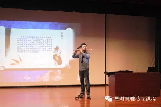 首先,陈柏良老师一曲悠扬的笛声响起,令全场立刻安静无比,把孩子从学习生活带进了幽静的大自然中。