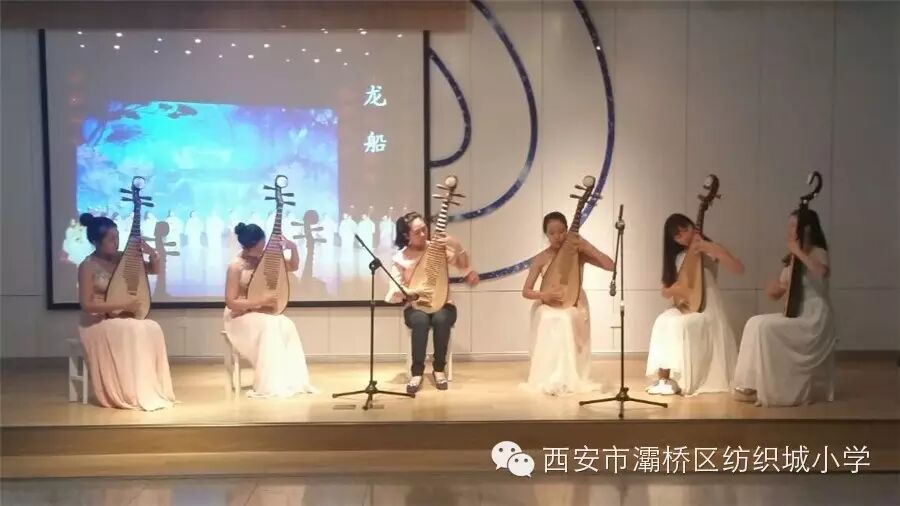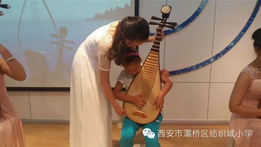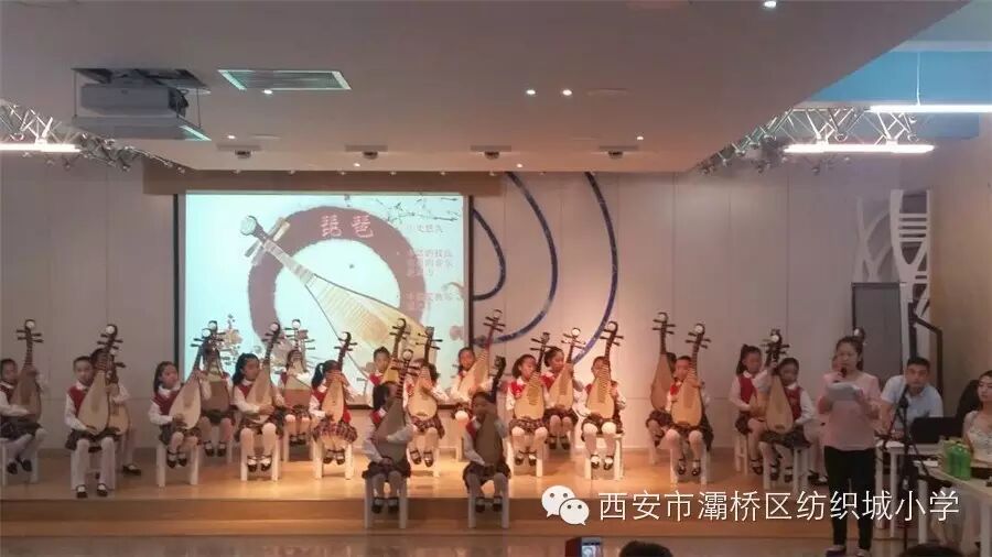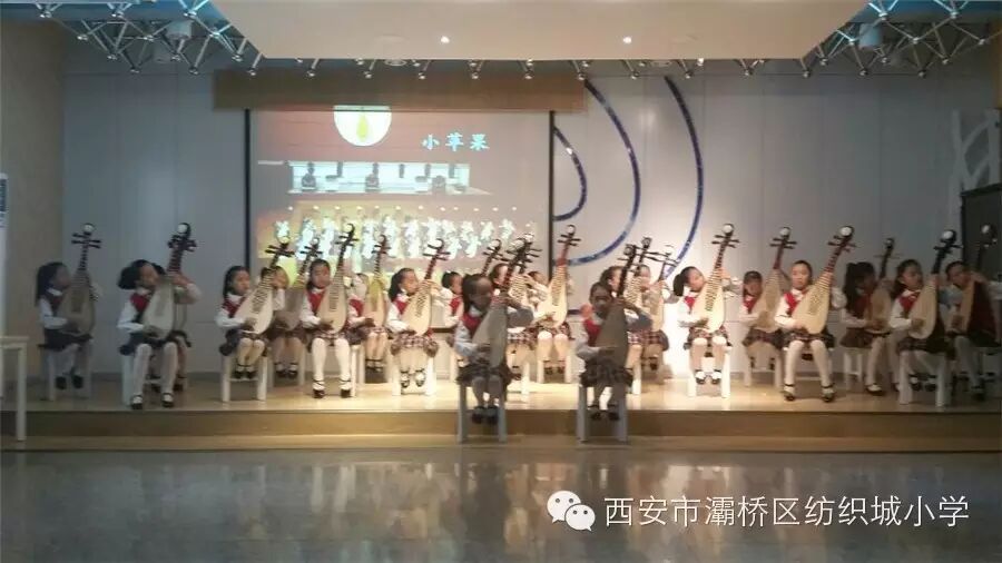 2015年9月20日,纺织城小学与西安音乐学院联手,举办了专场琵琶音乐会。琵琶社团的小演员们正在做精彩的开场表演。