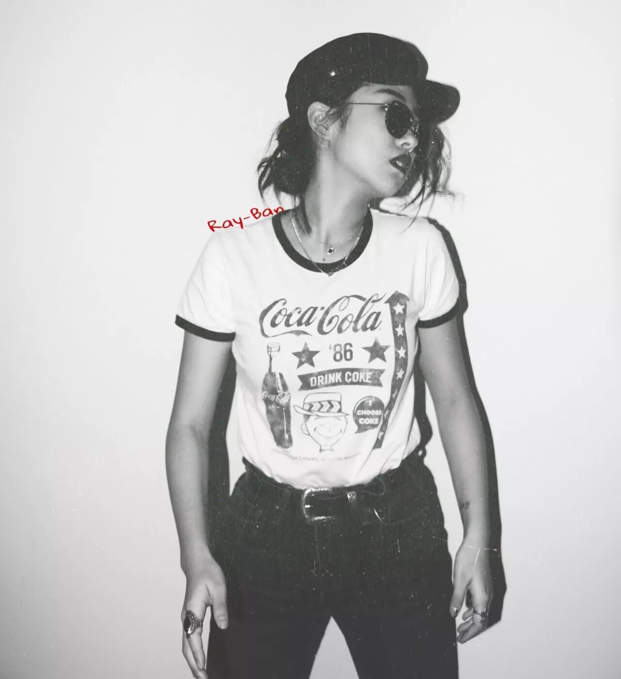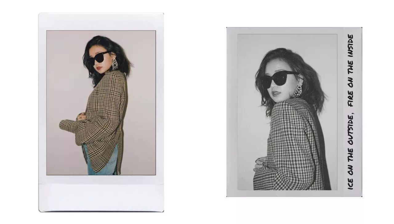 笛子以前不会轻易尝试镜片偏圆的复古款式,因为类似款普遍镜片会做的很小,就容易显脸大,但这一款镜片大小完全不会有这样的困扰。是一副容易使造型出彩但又不浮夸的墨镜。