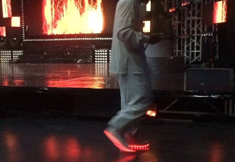 △穿着炫酷的鞋子,在舞台上挥舞起炭火,火花四溅,不过考虑到舞台安全问题要稍作调整,至于怎么调整,看《直通春晚》找答案呀~