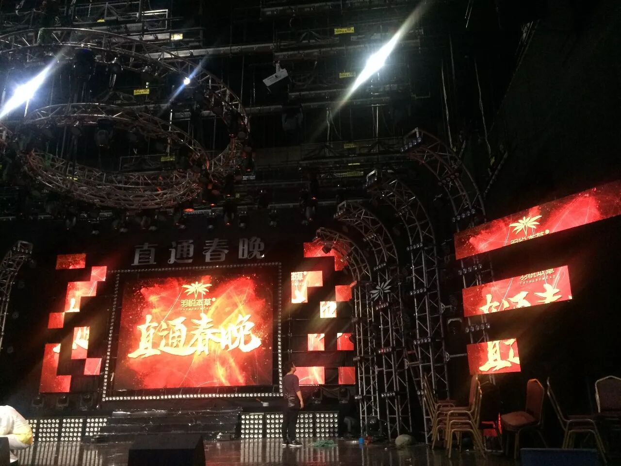 △春晚舞台已搭建完毕,几十块led屏幕分散排布,洋气又高端!搭建舞台的师傅们还在做最后的调整。