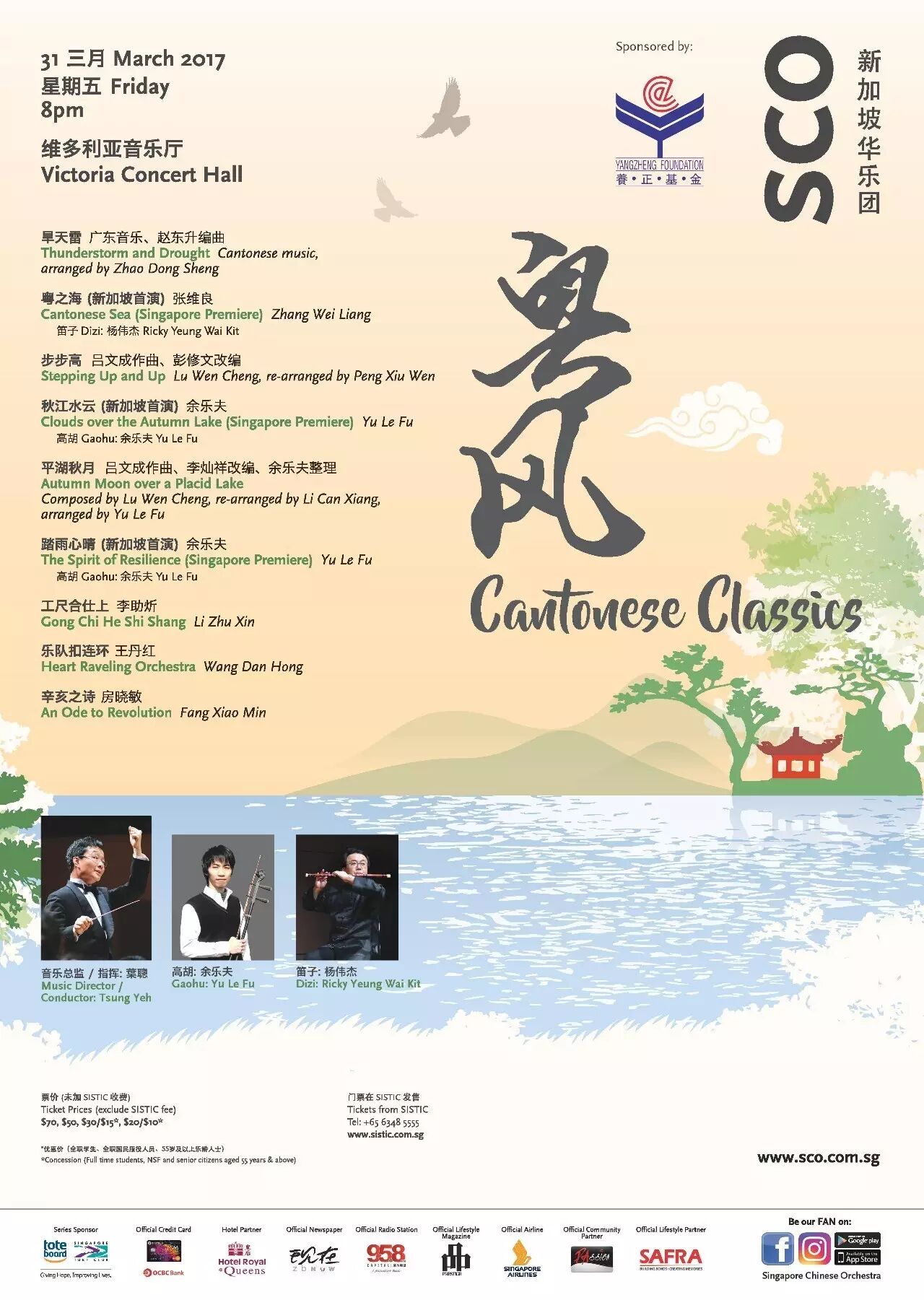 3月31日在新加坡維多利亞音樂廳舉行的“粵風”音樂會則是另外一種面向。由著名指揮家葉聰執棒新加坡華樂團,音樂會的規模可想而知。以大型樂隊的方式呈現“廣東音樂”,是幾十年來許多音樂家一直來努力的方向。有交響化的合奏新作,也有獨奏與樂隊的創編。這場音樂會基本上就是以大型作品為主,我將會演奏恩師張維良教授的竹笛與樂隊《粵之海》,樂夫會演奏他自己創作的高胡與樂隊《秋江水雲》,我們也會聯同華樂團的演奏家們共同演繹王丹紅的五架頭與樂隊《樂隊扣連環》。同一個月演兩場截然不同,又同是以“廣東音樂”為主題的音樂會,令人十分興奮!