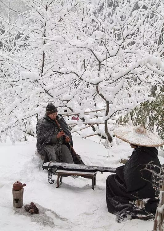 苦雪烹茶,是文人墨客们崇尚的一种高雅境界。在这时而舒缓、时而悠长的箫声里,我仿佛看到了白居易的“融雪煎茗茶,调酥煮乳糜”和陆游的“雪夜清甘涨井泉,自携茶灶自烹煎。”