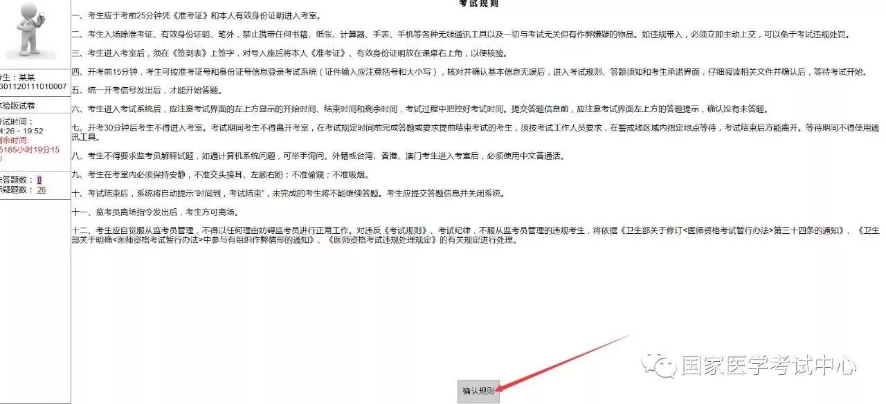 第四步:进入考试界面后,阅读“考试规则”后,点击“确认规则”。