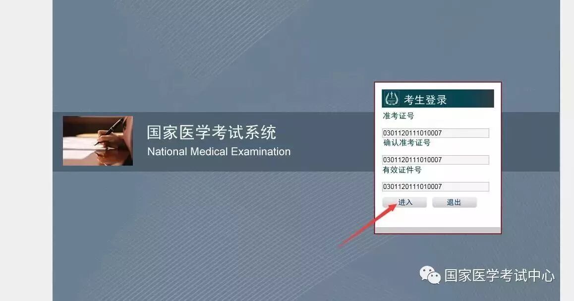 第二步:进入考生登录界面,点击“进入”。(考生登录信息为系统自动设置,无须再输入)