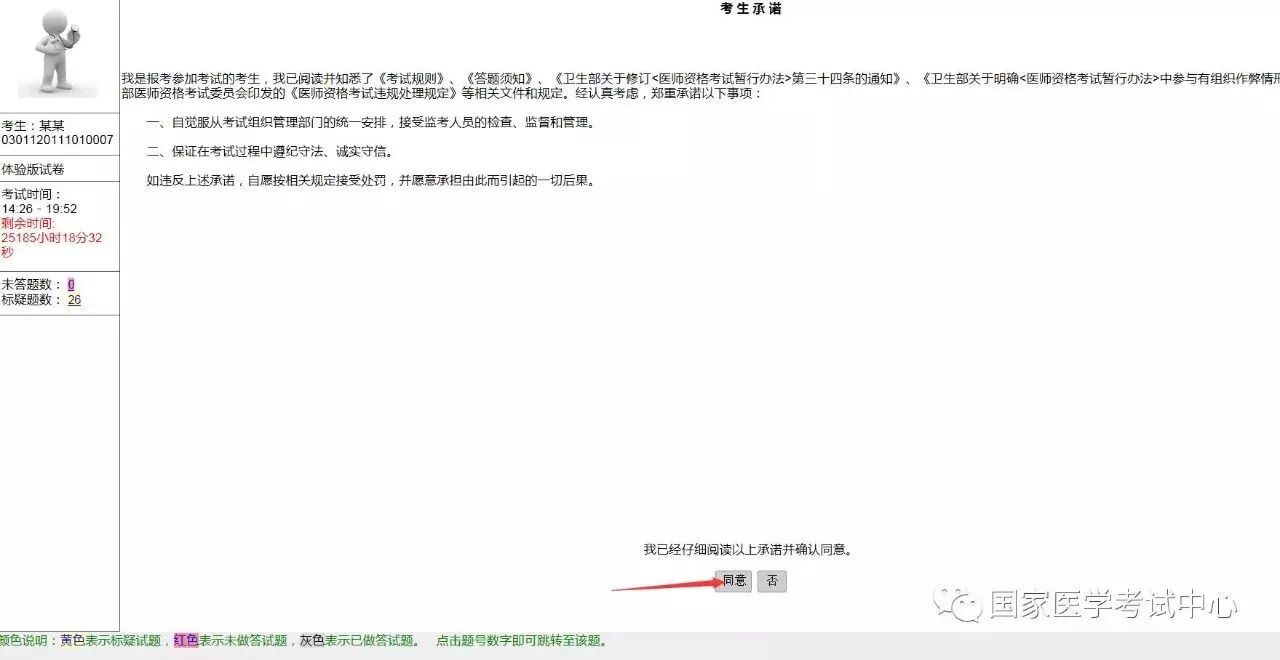 2、阅读考生承诺。进入考试规则和考生承诺界面,仔细阅读相关文件并确认后,等待考试开始。