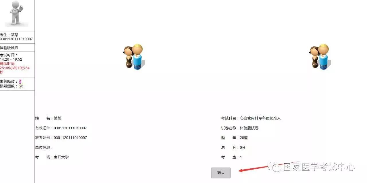 1、登录考试系统。开考前15分钟,考生可按准考证号和有效身份证件号登录考试系统,证件号输入过程应注意括号和大小写,核对并确认个人信息无误后点击进入。