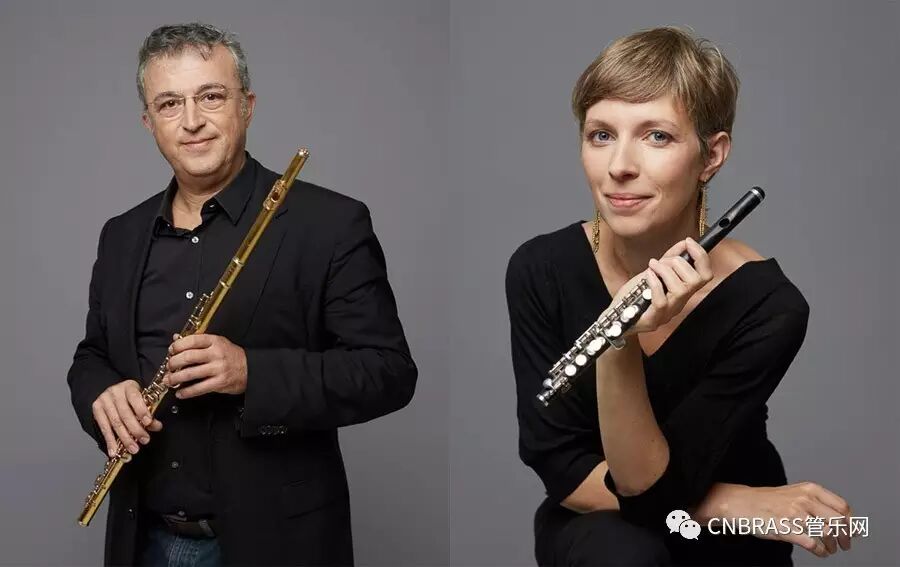 ▲左图是巴黎交响乐团首席长笛演奏家Vicens Prats,出生于西班牙,毕业于巴黎音乐学院,目前也是巴黎音乐学院的教授。右图是短笛演奏家Anaïs Benoit。