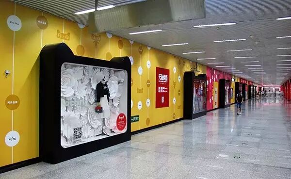 今年8月,天猫以别具一格的方式与地铁乘客进行了亲密接触。在15号线望京西站,十个代表性服饰的品牌展柜从天猫旗舰店穿越到地铁站的玻璃橱窗内。