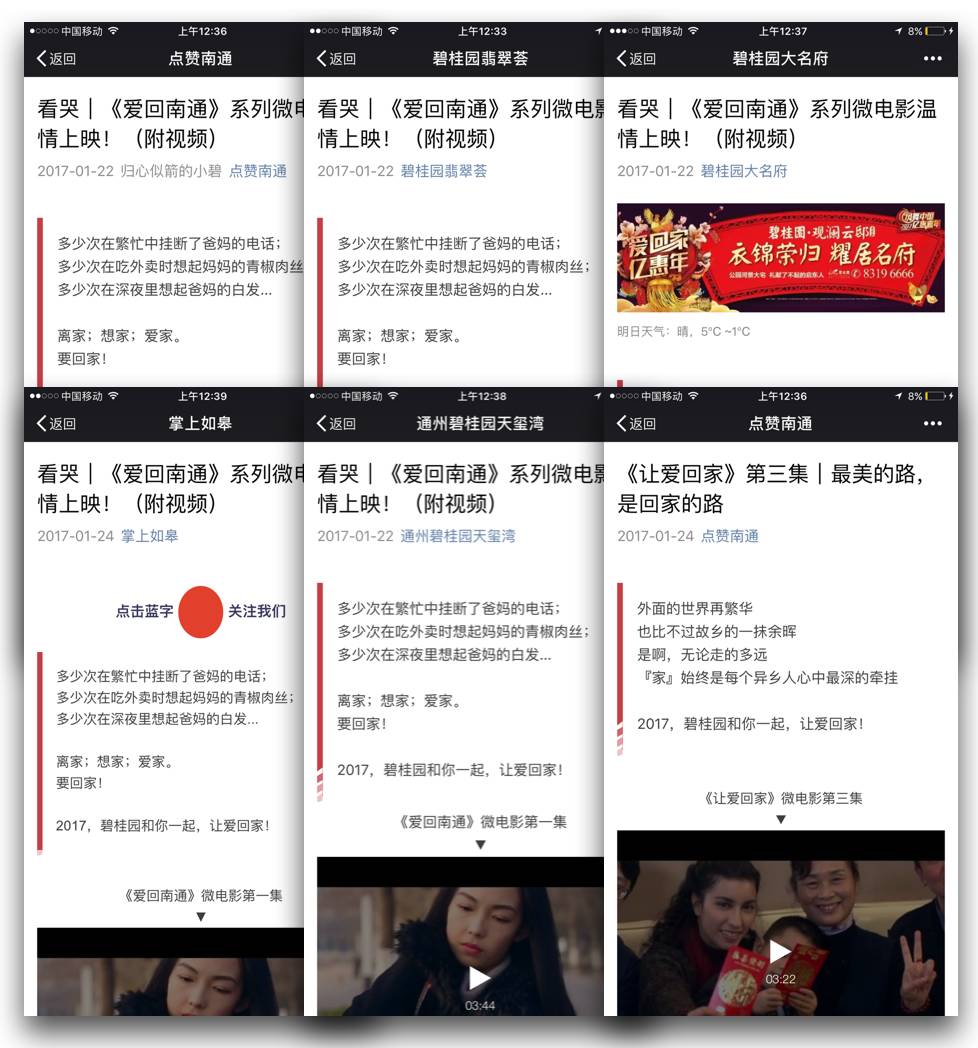视频的发布着重利用情景化程度高、传播速度快的新媒体载体,在腾讯视频、自媒体矩阵、城市论坛等平台全面铺开;在城市级传播矩阵的推动下,碧桂园沪苏区域苏中片区各盘项目集体发声,引发业界内外的关注,在2017年房地产返乡置业的浪潮中达成先声夺人之势头。