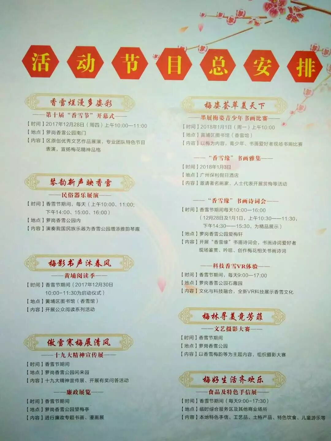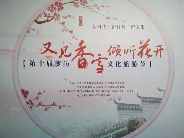 本届的萝岗香雪文化旅游节主题是“又见香雪,倾听花开”,时间是2017年12月28日——2018年1月3日。