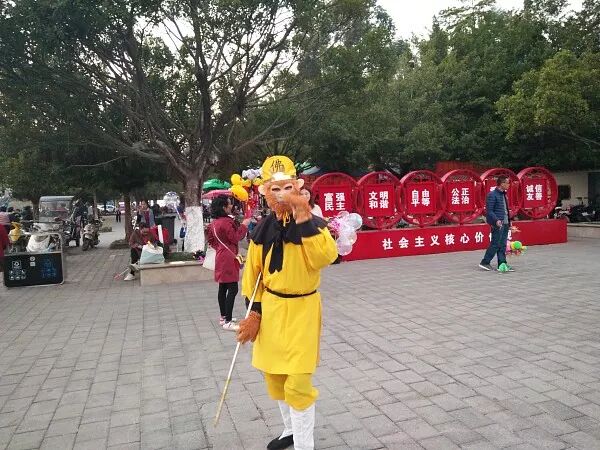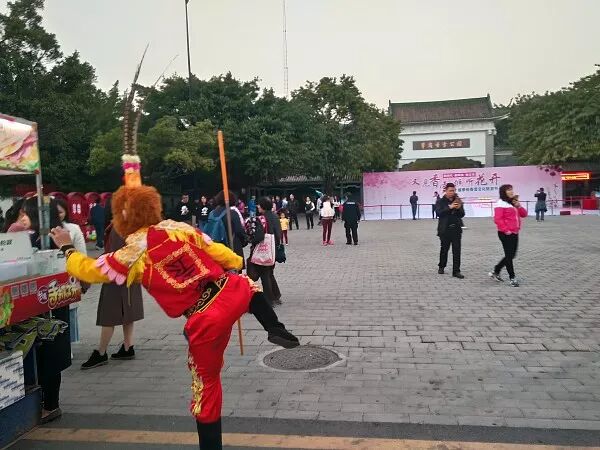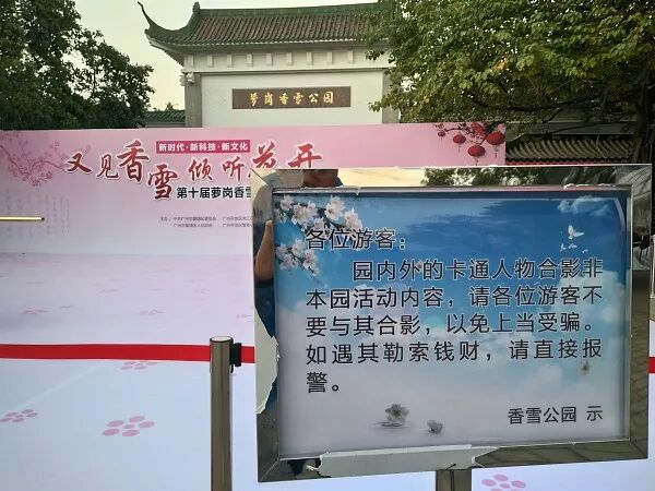 大门口也有关于和卡通人物合影的提示,附近仍有不少孙悟空造型的人物招呼游人拍照,大家就小心点了。