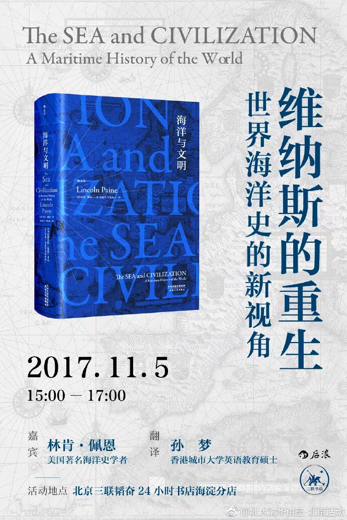 【维纳斯的重生——世界海洋史的新视角】2017年11月5日(周日)15:00-17:00【嘉宾】林肯·佩恩(Lincoln Paine)(美国著名海洋史学者,供职于著名的缅因州海事博物馆)【翻译】孙梦(香港城市大学英语教育硕士)【简介】海洋通过河流连接大陆,大陆和大陆之间又通过海洋相互沟通,我们驾驭与利用水力和风力,以此作为运输的助力,并制造船舶以提高效率和安全性,而这一过程又催生了社会组织的跨地域的交流,在远距离交通极为困难的过去,海洋给我们提供相互沟通极为重要的媒介。理解海洋史在某种视角上就是在理解多种跨文化的交流、影响和变异如何塑造了现代世界。【地点】北京市海淀区三联韬奋24小时书店海淀分店