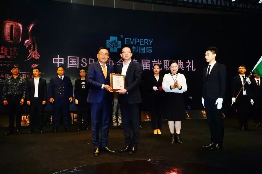 在铿锵的誓言里,唐亚雷会长与刘佟、罗小林两位名誉会长为范笠军、关翠微、王淑艳等副会长,,靳建忠、钱浅、、常务理事授牌,也宣告中国SPA协会十周年庆典暨换届就职典礼的圆满落幕!