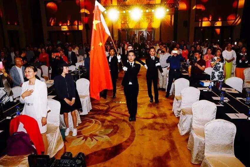 随后,交接仪式正式开始,冯华、郭健、郭东、徐新军、罗小林、刘佟、靳建忠、钱浅、于明山、陈智诚等名誉会长作为典礼证人登台。嘹亮的国歌响起,全体嘉宾起立,鲜艳的国旗与会旗在璀璨灯光中飞扬,带着神圣、肃穆与庄严。