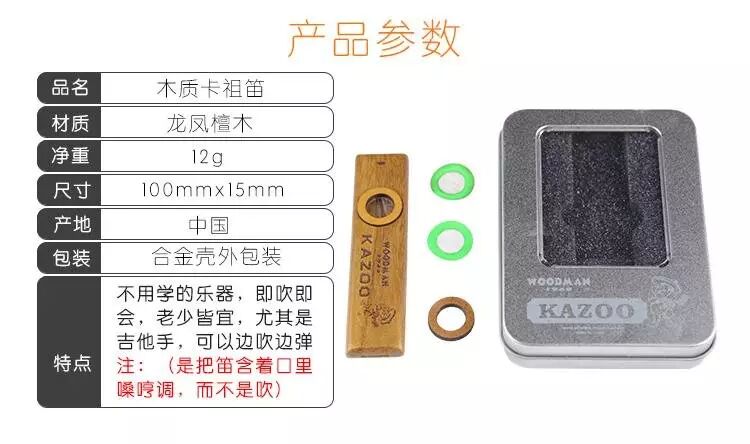木制卡祖笛,精美铁盒包装,送亲朋、送好友必备礼品。