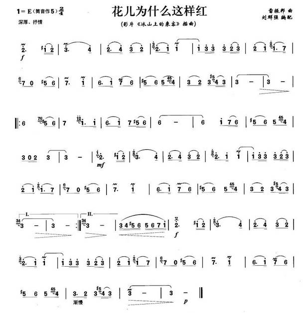 cctv录制歌曲《花儿为什么这样红》笛箫:陈悦PS:开始一段是箫,后面一段是竹笛。 《花儿为什么这样红》旋律优美凄凉,动听的曲调和象征性的歌词,每每让人心醉神驰。世间的雪莲都是纯洁的,而这里的雪莲却鲜红如火。就如歌词里写的:它是用了青春的血液来浇灌,它象征着纯洁的友谊和爱情。洁白的天山,鲜红的雪莲,就如同冰与火的撞击,绚烂、不休。乐曲运用了新疆代表性乐器萨塔尔琴和汉族传统乐器笛箫,两两遥相呼应,如同新疆姑娘和汉族青年的爱情,纯洁坚贞,如痴如醉。 陈悦,CCTV“光荣绽放·十大青年竹笛演奏家”之一。中国音乐学院国乐系副教授、硕士生导师,中国音乐家协会民族管乐研究会会员,,赵松庭笛子艺术研究会常务理事。。录制发行了九张笛、箫专辑,其中《对话——箫与竖笛现代作品十首》获格莱美欧洲古典音乐提名。